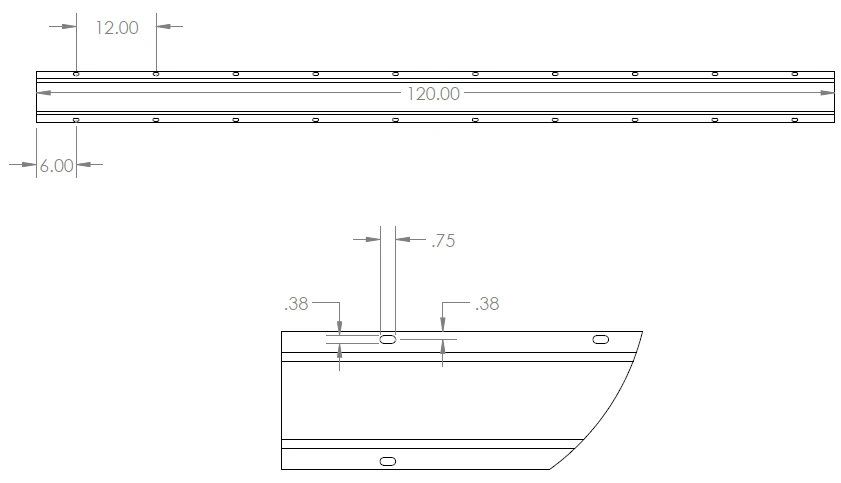 The FMP Split Casing system is shipped in 10 ft. halves with anti-corrosive fasteners included, configured according to the flange bolting slot pattern indicated below (holes positioned on-center to allow field customization). Half sections can be ordered pre-cut into 5 ft. sections to enable staggered assembly, creating strength and eliminating the need for coupling in straight runs. Labor savings of 50 - 75% have been reported from field installers.